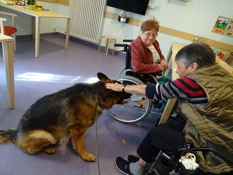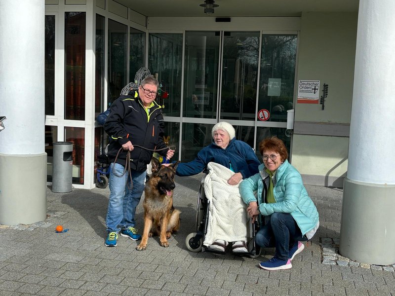 Große Freude in unserem Haus! Unsere Bewohnerinnen und Bewohner genießen den Besuch von Schäferhund Merlin immer sehr. Egal ob streicheln, schnüffeln, spielen: Für die Seniorinnen und Senioren ist die Zeit mit dem liebevollen Vierbeiner immer besonders schön.