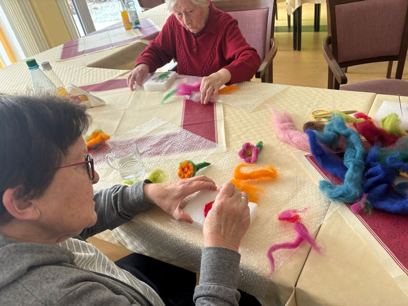 Mit der Nadel zu filzen, ist eines der Dinge, die sehr gut angenommen werden in unserer Kreativrunde immer Montags im Haus.