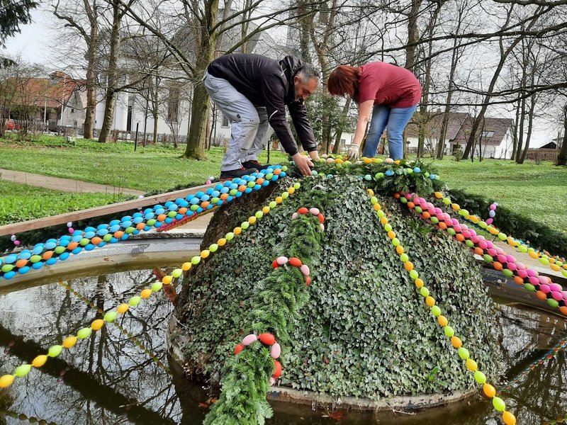 Die letzten Eier sind gefärbt, der neue, große Osterbrunnen im Park des Hauses St. Hildegard ist fast fertig geschmückt. Nun warten alle Bewohnerinnen und Bewohner, aber natürlich auch meine fleißigen Kolleginnen, auf den heutigen Nachmittag – dann findet nämlich die feierliche Einweihung des Brunnens mit dem obligatorischen Eierlikör statt. Dieser wurde heute früh schon ausgiebig auf Qualität geprüft.