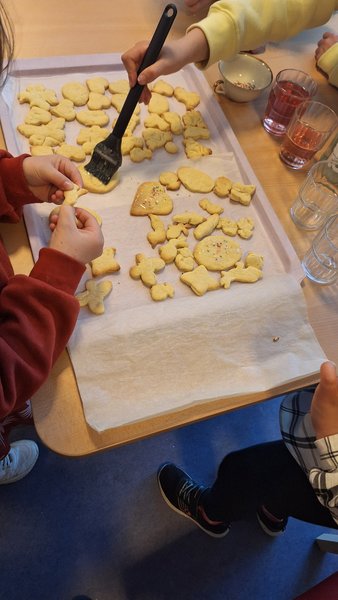Eine Gruppe der Teilnehmenden machte sich begeistert ans Backen: Es wurden Plätzchen ausgestochen, gebacken und liebevoll verziert. Der Duft frisch gebackener Kekse erfüllte den Raum und sorgte für eine heimelige, fröhliche Atmosphäre. Dabei entstanden nicht nur köstliche Leckereien, sondern auch schöne Gespräche und gemeinsames Lachen. Parallel dazu erlebte eine weitere Gruppe einen abwechslungsreichen Spieleparcours mit verschiedenen Stationen. Jung und Alt bildeten gemischte Teams und meisterten gemeinsam kleine Herausforderungen. Ob Memory, Bücherkegeln oder andere Gesellschaftsspiele – im Mittelpunkt standen Teamgeist, Freude und das gegenseitige Kennenlernen.