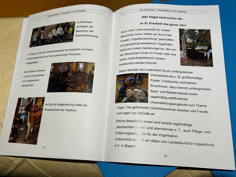 Das Rosenblatt ist unsere Hauszeitschrift und berichtet über neue Bewohnerinnen und Bewohner, Geburtstage und Jubiläen, neue Mitarbeitende, Veranstaltungen und gibt einen Überblick über das Leben und Arbeiten in unserem schönen Haus.