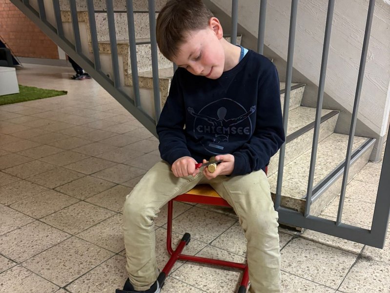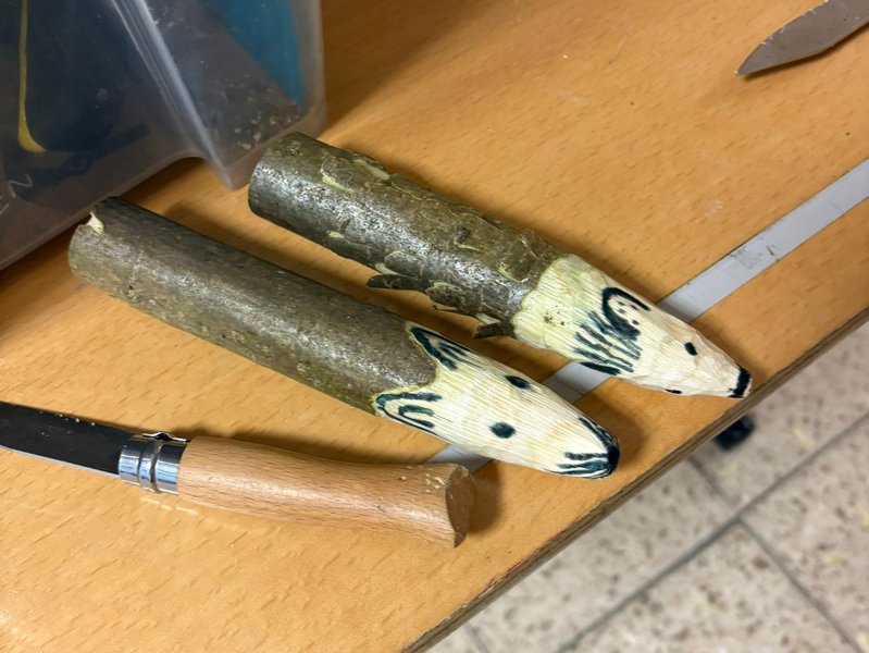 Im Februar starteten wir den Schnitzkurs in der Grundschule. Ziel ist es, dass jedes Kind mit mir einen Schnitzführerschein macht.