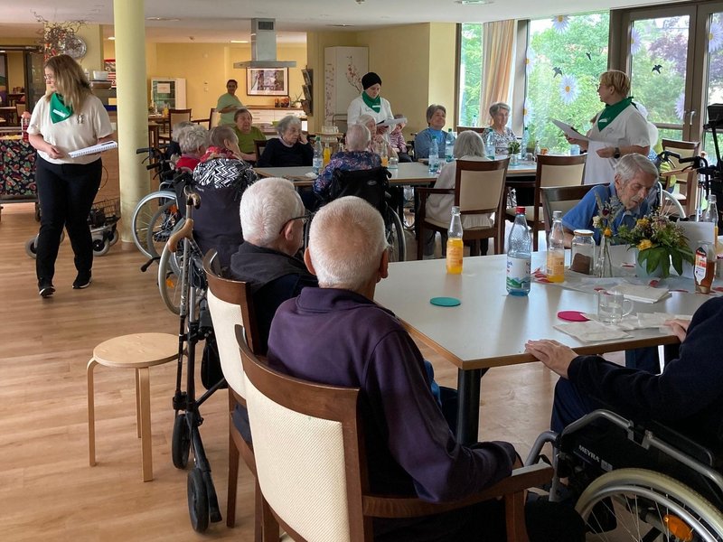 In unserer Urlaubswoche im Haus reisen wir gedanklich ins Fichtelgebirge. Wir packen in unseren Koffer alles was wir benötigen, um diese atraktive Ferien und Wanderregion zu erkunden: Dabei haben wir am ersten Tag der Urlaub im Haus Woche viel Wissenswertes über das Fichtelgebirge gelernt: welche berühmten Persönlichkeiten aus der Region kommen, welche Sehenswürdigkeiten und Freizeitaktivitäten es dort gibt. Ganz wichtig ist es dem Team der Betreuung dabei, den persönlichen Blick auf die Bewohner zu richten. Liebevoll und individuell geht die Betreuung auf die persönlichen Erinnerungen der Bewohner ein. Heute morgen wird viel Wissenswertes vermittelt heute Nachmittag setzt die Betreuung auf eigenes Wissen, beim Bingo spielen rund um das Thema Fichtelgebirge.Bei Bowle und Knabbergebäck können die Bewohner in lockerer Runde ihr Wissen abrufen und kund tun.Zu gewinnen gibt es sogar auch eine Kleinigkeit. Ein aufregender erster Tag in unserer Themenwoche.